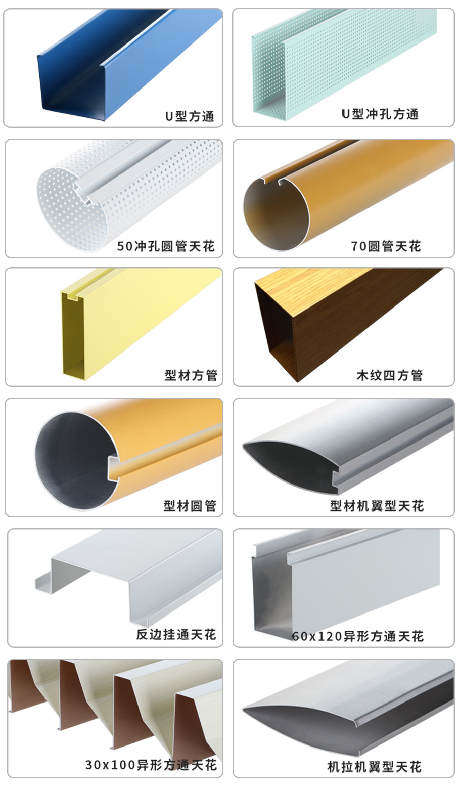U型鋁方孔因其截面像字母 " U " 而得名。將U型鋁方孔拉伸成型,制成優質鋁板的方形通孔擔架(底部的寬度和高度可以選擇和匹配)。然后,如果需要,再對表面進行靜電粉末處理或木紋熱轉印,得到成品。U型微孔鋁方通是最常見、最常用的鋁方通。線條明快、優雅,整體通透、沉穩、色彩豐富。可以通過選擇合適的高度來改變設計,用合適的視角打造窗簾效果。效果美輪美奐。同時,鋁方槽結構合理,經久耐用,裝拆靈活。可根據用戶要求調整視覺高度,對空間照明效果和安裝消防噴淋頭、空調系列等設備非常有用。彩色U型鋁通道和U型木紋鋁通道是近年來最受歡迎的鋁通道產品。木紋逼真,顏色接近自然,裝飾感自然。消除一天的疲勞,放松身心。