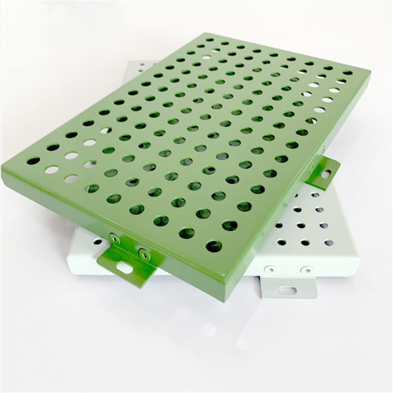 氟碳沖孔安徽鋁單板是采用代號(hào)1200H26、1070H26、5005H26等鋁板幕墻的專用單層鋁板作為原材料。在通過數(shù)控設(shè)備的精雕細(xì)琢,裁剪沖壓,再通過數(shù)控折彎等工藝技術(shù)成型。鋁板的表層在采用氟碳油漆的噴涂或是粉末噴涂等工藝來做表面的處理形成幕墻的裝飾材料。