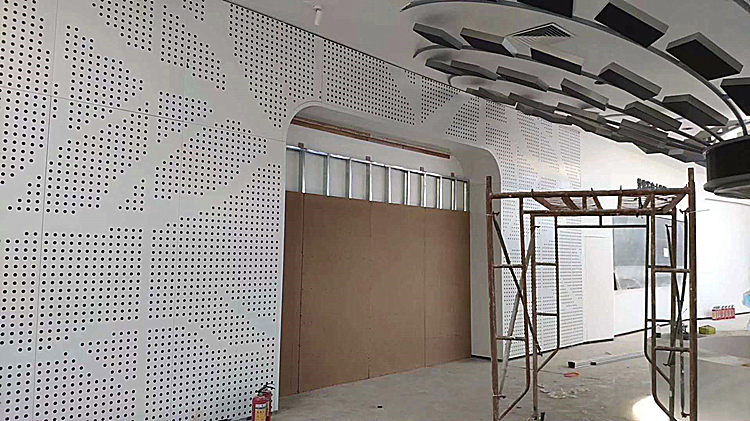 沖孔鋁單板一般多用于商務辦公區、多功能廳、會議廳、演播廳、大禮堂、音樂廳、影劇院、酒店、別墅、家具場所和休閑娛樂等防火要求和聲學要求都較高的大型公共場所。