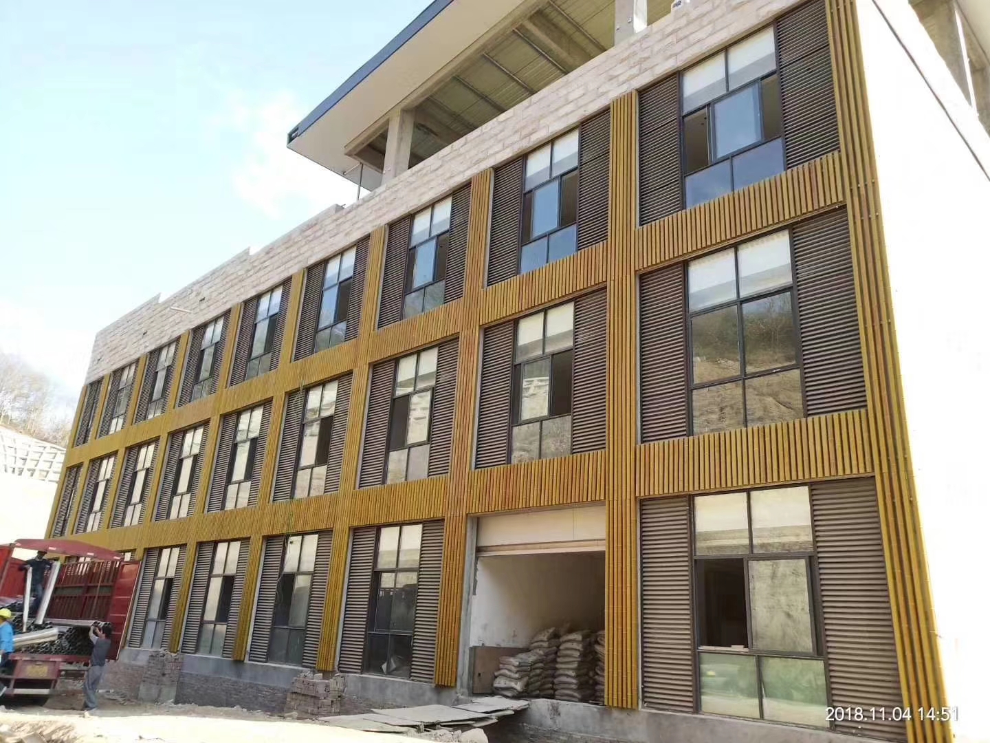 現在很多餐飲、溫泉度假行業,把竹子用到室外幕墻進行裝飾。傳統材料的竹子用在室外,時間長了會腐爛、蛀蟲、變色等,尤其是防火性能達不到A級標準。